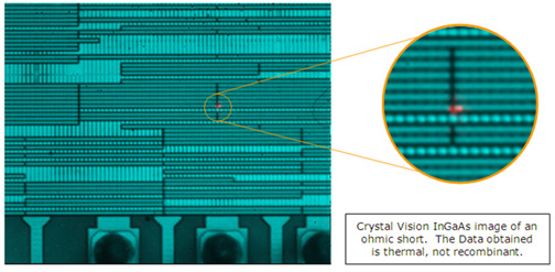 FAI Crystal Vision 微光發(fā)射顯微鏡 FAI 微光發(fā)射顯微鏡用于檢測(cè)半導(dǎo)體內(nèi)部缺陷引起的微光發(fā)射或微熱發(fā)射來準(zhǔn)確定位半導(dǎo)體器件的失效位置。通過使用不同類型的探測(cè)器,或者配置雙激光掃描系統(tǒng)(SIFT),以及配合相應(yīng)的檢測(cè)軟件來實(shí)現(xiàn)對(duì)半導(dǎo)體元器件或芯片電路的微光、微熱、光激勵(lì)誘導(dǎo)失效測(cè)試等各種分析手段。 FAI的Crystal Vision微光發(fā)射顯微鏡系統(tǒng)對(duì)所配置探測(cè)器的數(shù)量沒有限制,可選擇配置從一個(gè)到我們提供的所有型號(hào)的探測(cè)器和SIFT激光掃描頭。 主要功能: CCD探測(cè)器:波長(zhǎng)探測(cè)范圍 365nm 至 1190nm;帶電子半導(dǎo)體制冷器(TEC)的CCD探測(cè)器,可冷卻穩(wěn)定在 -40℃以下,無(wú)需使用危險(xiǎn)的液氮制冷劑;CCD解析度為1280x1024;像素暗電流<0.002 電子/秒;讀噪聲<7 個(gè)電子;連續(xù)收集信號(hào)時(shí)間從32毫秒至2小時(shí)。 InGaAs探測(cè)器:波長(zhǎng)探測(cè)范圍 900nm – 1750nm;帶電子半導(dǎo)體制冷器(TEC)的InGaAs探測(cè)器,可冷卻穩(wěn)定在 -40℃以下,無(wú)需使用危險(xiǎn)的液氮制冷劑; InGaAs探測(cè)器分辨率為320x240,像素點(diǎn)尺寸為30 x 30um,更大的像素點(diǎn)面積可以收集更少的光子,探測(cè)靈敏度是普通640x480 InGaAs探測(cè)器的4倍;連續(xù)收集信號(hào)時(shí)間從1微秒到60分鐘;有效波段范圍內(nèi)量子效率(QE)為 80-85%;靈敏度 NEI <1x1010 ph/cm2/sec;量子效率>70 QE 在950-1700nm范圍內(nèi)。 VisGaAs 探測(cè)器:波長(zhǎng)探測(cè)范圍 500nm – 1800nm,代表了新技術(shù)的VisGaAs 探測(cè)器覆蓋了可見光-紅外光波長(zhǎng)檢測(cè)范圍,一個(gè)探頭就可替代傳統(tǒng)的CCD和InGaAs 兩個(gè)探測(cè)器;半導(dǎo)體制冷器(TEC) ,可冷卻穩(wěn)定在 -40℃以下。 SIFT(Stimulus Induced Fault Testing)雙波長(zhǎng)激光掃描頭:雙激光源654nm和1428nm;通過激光掃描芯片電路,導(dǎo)致失效位置電阻發(fā)生變化,通過檢測(cè)反饋信號(hào)的變化,從而檢測(cè)到失效位置;SIFT掃描不受物鏡視野限制,可以一次掃描完整整個(gè)檢測(cè)區(qū)域,無(wú)需圖像拼接,避免圖像扭曲;FAI的恒定電流附加反饋回路的技術(shù),不但提高了檢測(cè)靈敏度,而且避免了檢測(cè)時(shí)電壓過高的風(fēng)險(xiǎn);恒定焦距的定鏡掃描,可以將激光點(diǎn)停留在任意指定位置,用于確認(rèn)失效點(diǎn)。 FMI熒光熱成像技術(shù):FAI的微熱分析技術(shù),熱分辨率是千分之一K(1/1000K),可以室溫操作,無(wú)需使用危險(xiǎn)的液晶溶液。 LC液晶熱成像技術(shù):FAI的SLC(穩(wěn)定液晶)液晶熱成像技術(shù)的熱分辨率為百分之一K (1/100 K)。 Moire云紋成像:從硅片背面采用“云紋圖像成像”的方式來檢測(cè)失效位置的微熱變化。