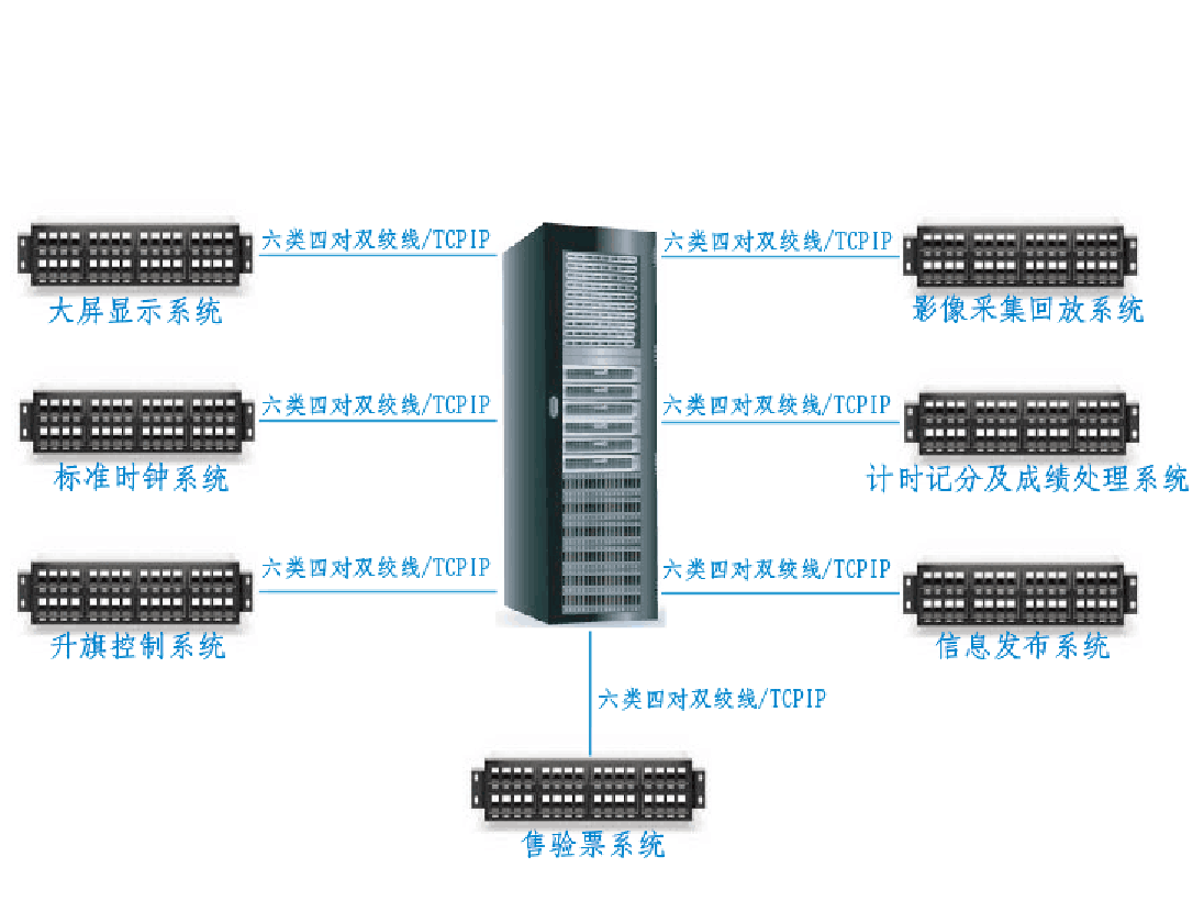 具有多種通信接口和支持多種通信協(xié)議,能方便、靈活地接入不同廠商、不同接口的系統(tǒng)和設(shè)備??梢詫鲳^中具有開放接口的系統(tǒng)和設(shè)備直接集成到體育場館比賽設(shè)備集成系統(tǒng)中